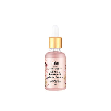Indya Marula & Rosehip Oil Infused Serum repairs and revitalises skin 30 mlThis serum revitalizes skin to reveal a healthy, youthful complexion. Marula oil keeps fine lines at bay, while the essential fatty acids and Vitamin C present in Rosehip oil helps in brightening the skin.Ingredients: