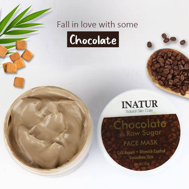 Inatur Chocolate & Raw Sugar Face MaskIdeal for:Dry to Normal Skin.Ingredients:Raw Sugar, Cocoa Powder, Honey Extract, Chamomile Oil & Turmeric ExtractDirections to Use:On a clean face, evenly apply a layer of the mask avoiding the eye area. Let it stay for 10-15 minutes until it dries. Wash off the mask with water and pat dry.